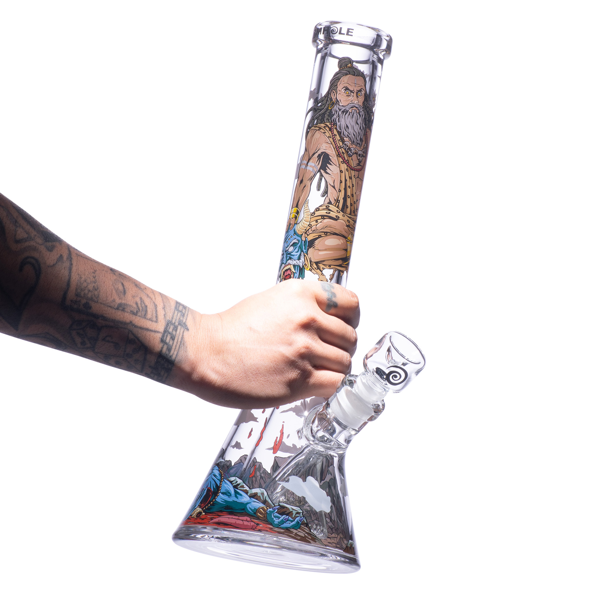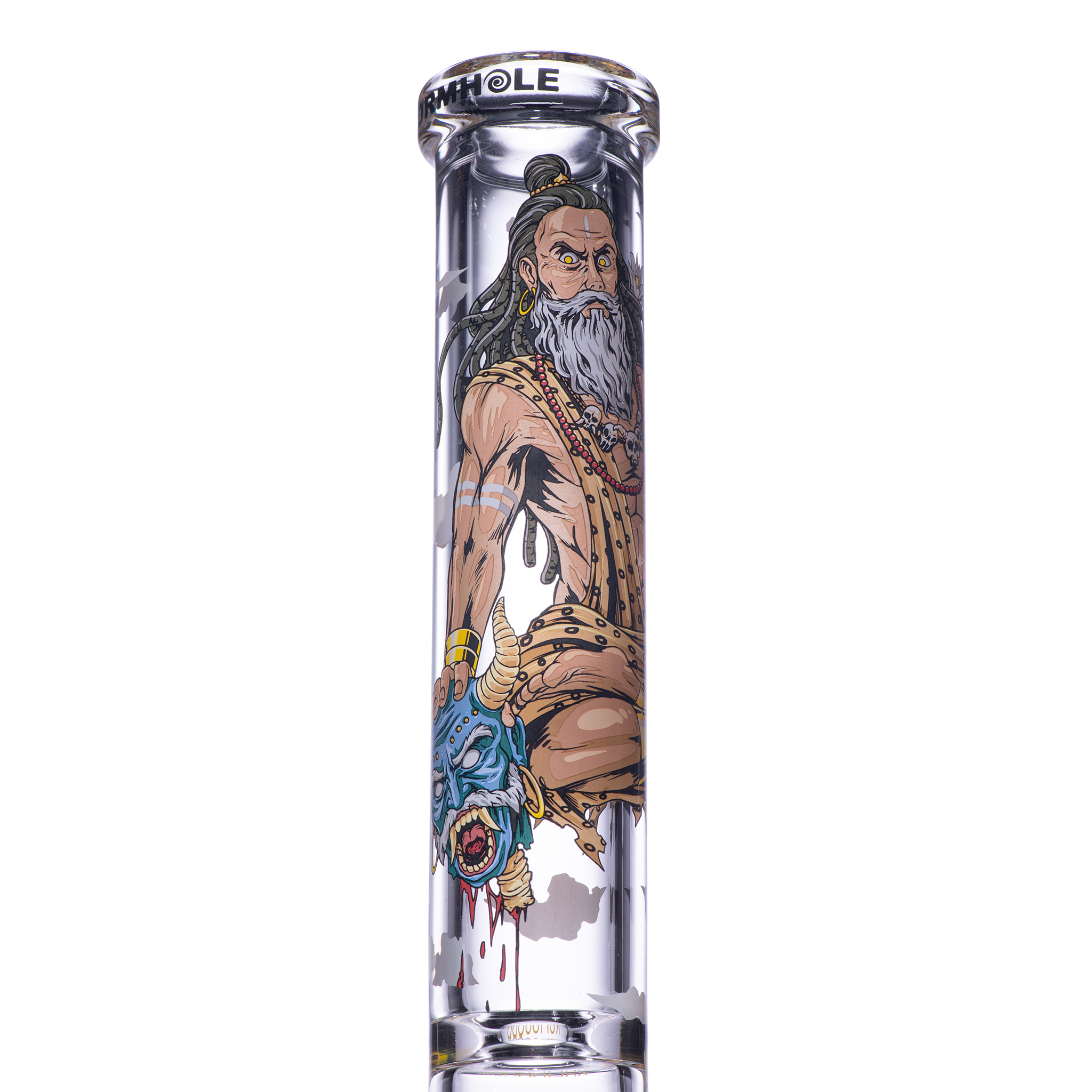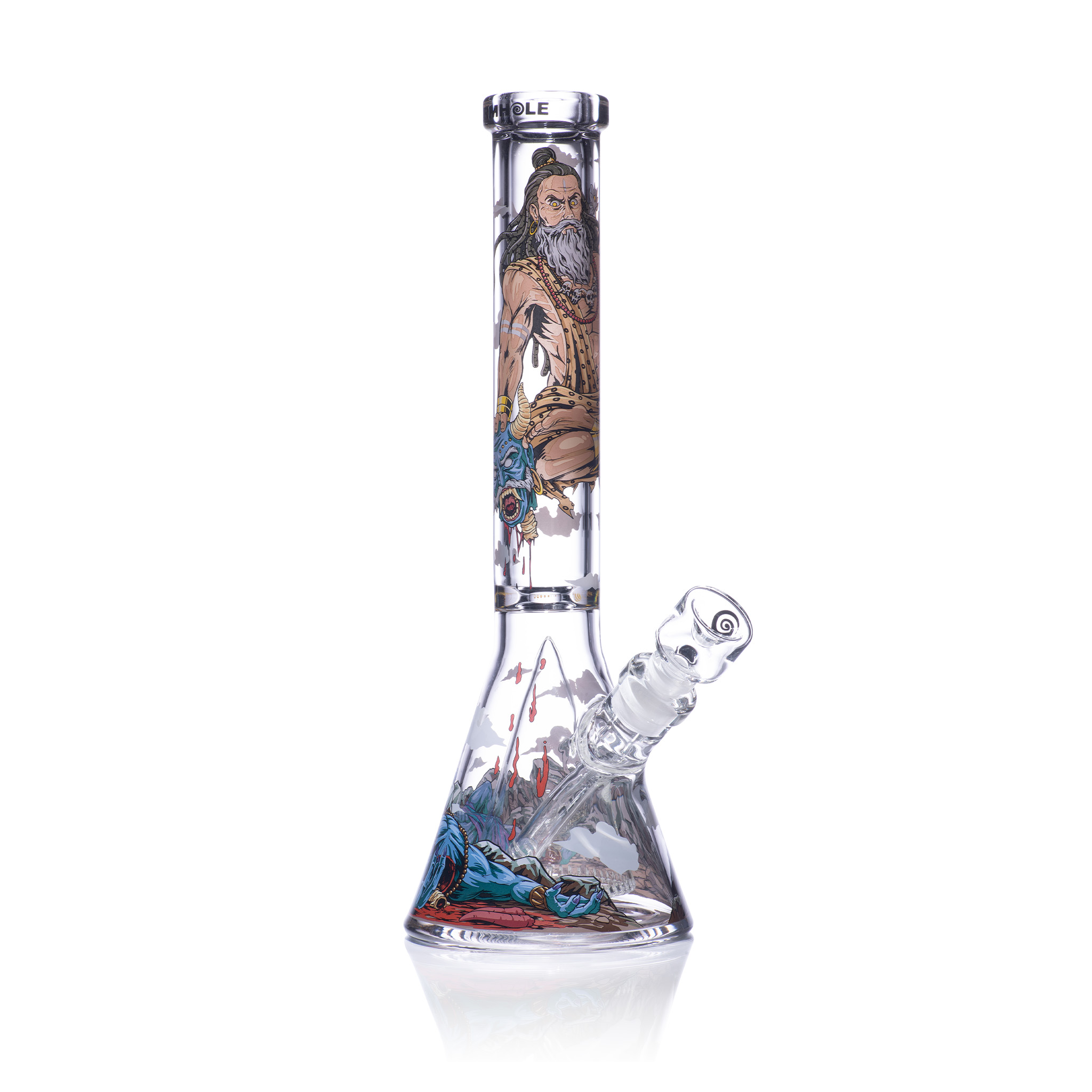 Kalinanda, with the barest effort, rips Malgar’s tongue from his fanged mouth. Incensed, the demon lunges to attack, enraging Kalinanda. But the death yogi—in his meditative position, legs crossed and even still, levitating—tears Malgar’s hideous head off, severing it from his grotesque body.