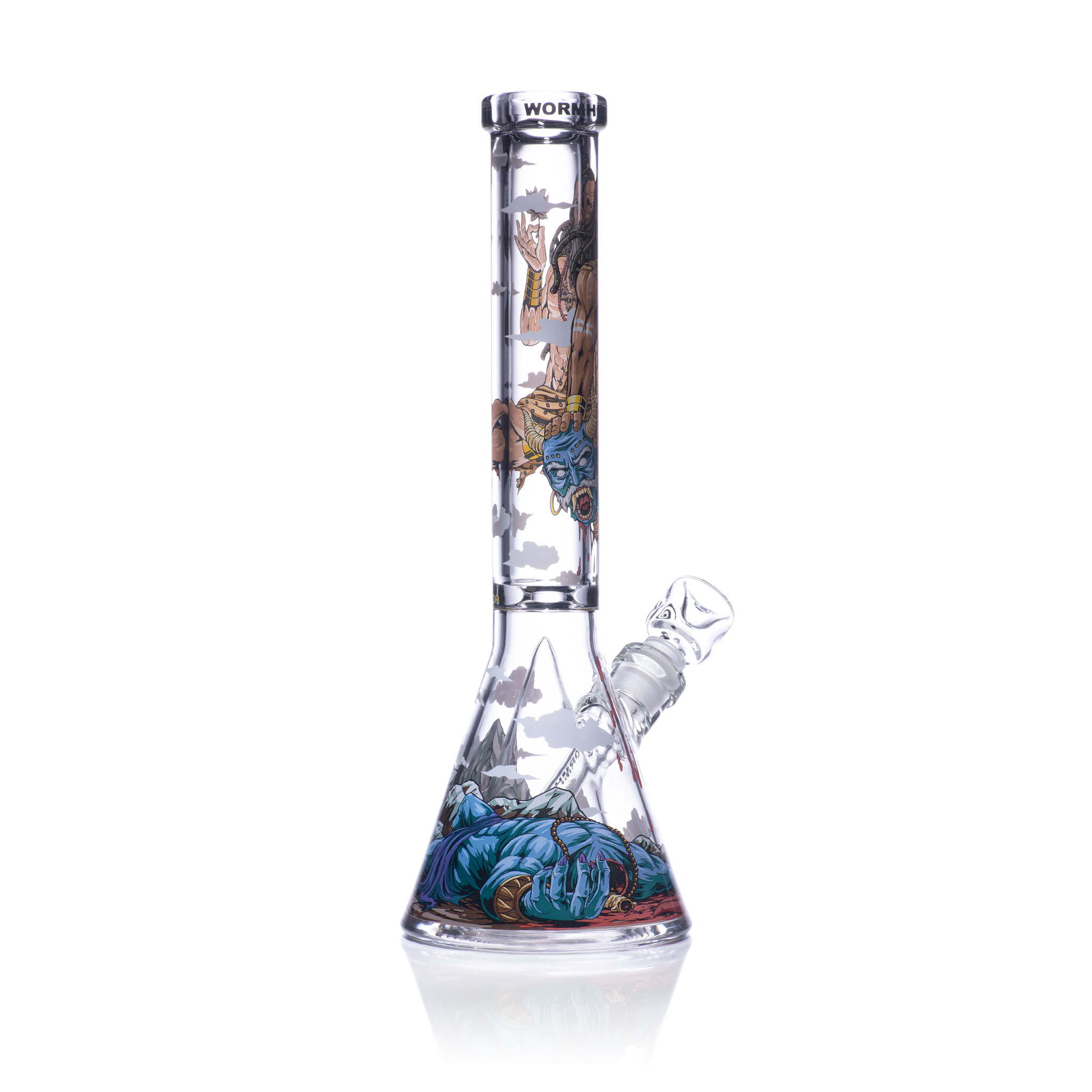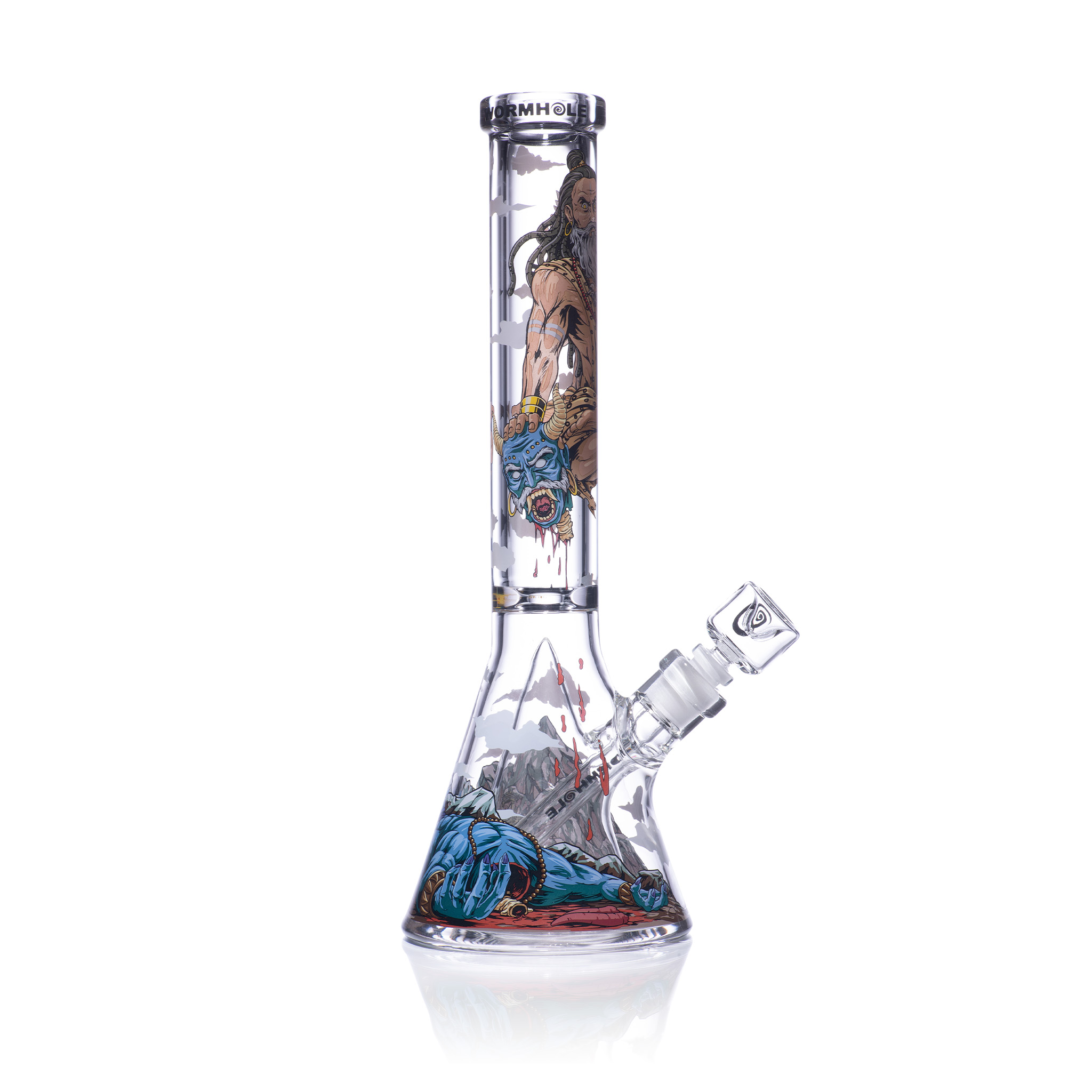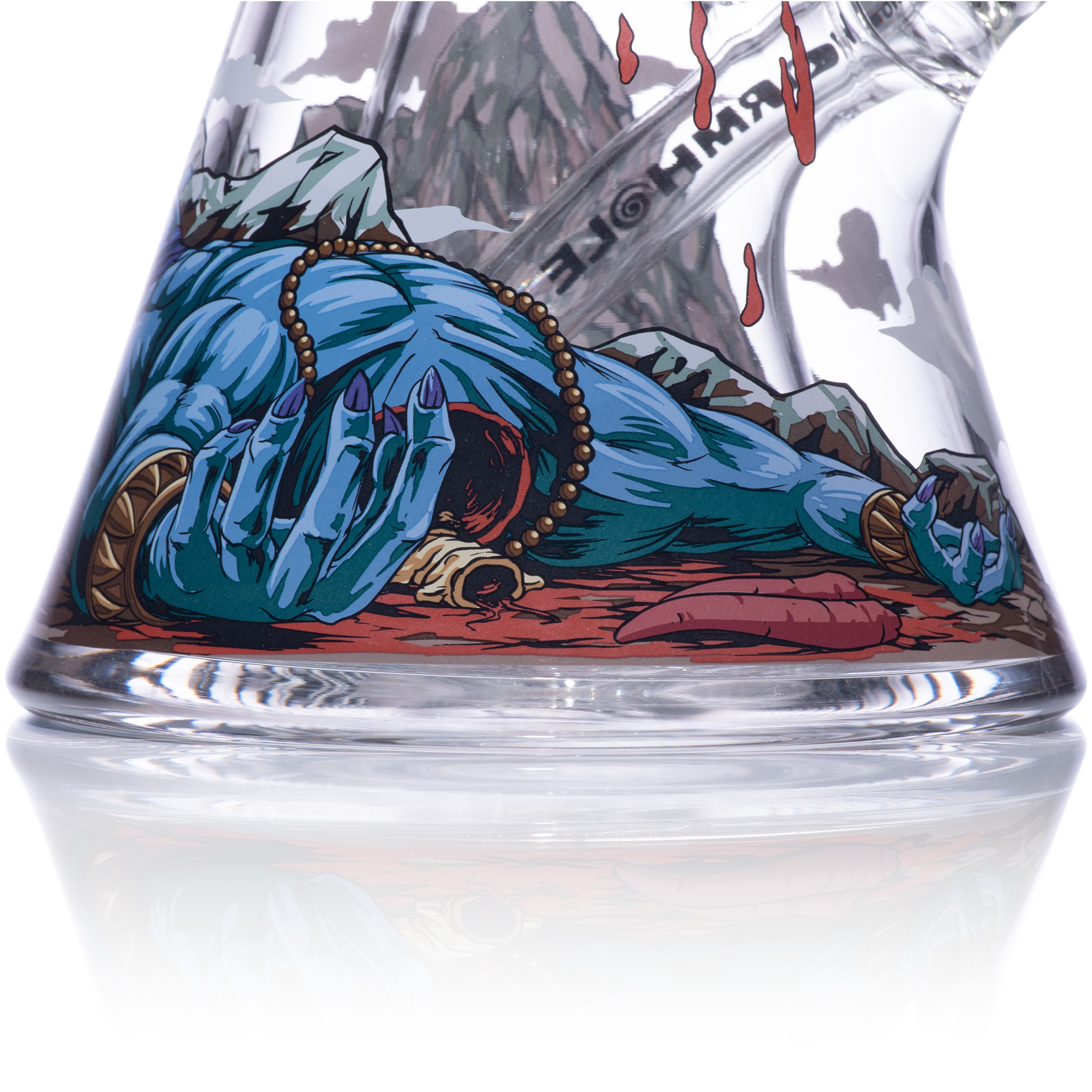 Kalinanda, with the barest effort, rips Malgar’s tongue from his fanged mouth. Incensed, the demon lunges to attack, enraging Kalinanda. But the death yogi—in his meditative position, legs crossed and even still, levitating—tears Malgar’s hideous head off, severing it from his grotesque body.